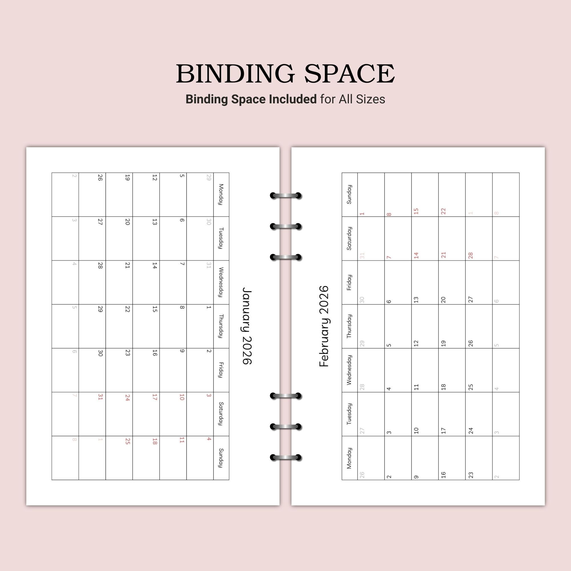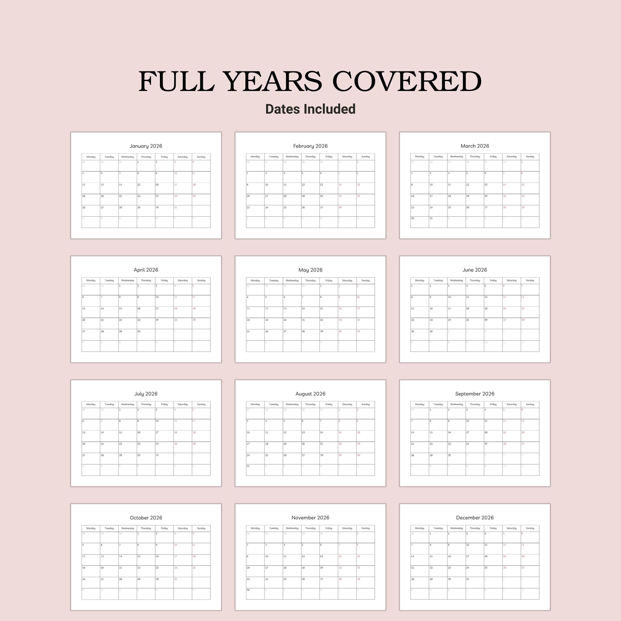 Landscape format makes monthly planning easier to read, annotate, and display, especially for visual planners and those managing multiple responsibilities side by side. With five full years built in, there’s no need to start over every January.